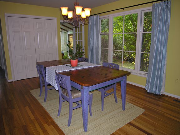 New on the Market! Move in ready: this mid-century modern home is located in the city limits of Lexington VA. This 3 bedroom 3 bath home has just been newly renovated by artists and artisans and is located on 2 city lots (3/4 acre). Large entry foyer and sunroom grace the front of the home, large living room off the entry foyer, nice size dining room, and a modern updated eat in kitchen opens to huge private deck. Mostly hardwood floors throughout with lower level great room newly carpeted and has redone bath and laundry. Two bedrooms and two baths up also have hardwood floors and generous closet space. Approx. total square footage is 2,200 inside with outside deck being approx. 550'. Central air and heat. Included on the large nicely landscaped and private fenced-in lot is an outbuilding for storage. Asking price is $287,500.