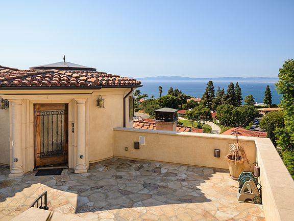 Spectacular Malaga Cove Tuscan Style home was custom built in 2007 offering breathtaking panoramic views of the ocean, Queen's Necklace & city from downtown LA to Malibu. This home boasts a huge elegant open floor plan with 4 bedrooms, 4.5 baths, plus a bonus room that could be used as an office, gym, or movie theatre, 5629 SF of living space. A wide dramatic spiral staircase leads you from the entry down to the main living areas hosting the formal living, kitchen, family & dining rooms w/windows & French doors looking out to amazing ocean views. The focal area features a Chef's dream kitchen w/center island which opens to the breakfast nook & family room all facing the beautiful view. Unique hardwood & natural stone flooring are featured throughout the home. Fireplaces in the living, family & dining rooms as well as custom designed crown moldings and ceilings in all the rooms. The master retreat includes a luxurious private bathroom w/spa tub overlooking the ocean view, a large walk-in closet & French doors that lead out to the backyard. Lush manicured backyard w/a gazebo looking out to the view plus space to create a pool if desired. Additional features include a separate laundry room, elevator & 3-car garage.