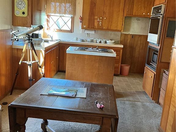 Interior boasts unique paneling with a rustic, homey feeling.