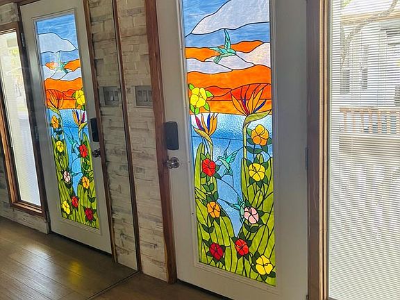 Stained-glass doors and windowsOpen layout