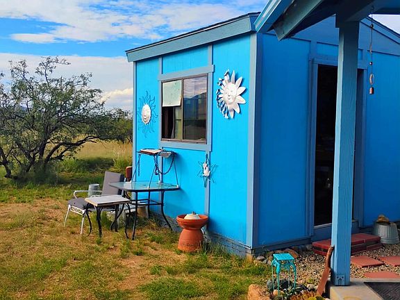 This immaculate and well maintained built home is ready to move in. Metal roof, Mini-ductless system, Covered front porch. Enlosed back porch with 280 sqft w/new windows with mini/split. It could be second bedroom, Tv room etc. Bedroom with good size closet. Comes with washer/drier, stove, refrigertor. & dishwasher. Tough shed with loft makes a great art studio, home office or bedroom for overnight guests. Workshop/storage shed for all your tools. Water well. Solar Panels. Mature trees. This is a site built only area. Gorgeous 360 degree mountain views. MILLION dollar view of the Cochise Stronghold. Peaceful, serene and close to everything. Wilcox, Benson I10 and more.
