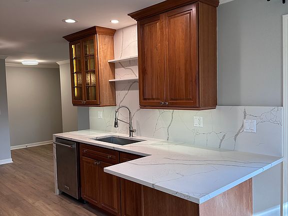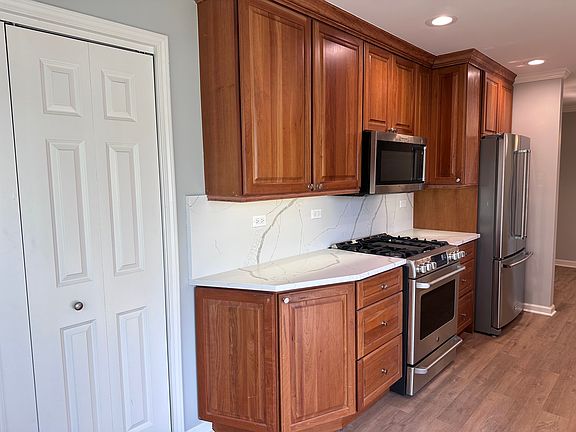 Gorgeous laminate hardwood flooring in the living room, kitchen, dining room and bedrooms. Spacious open layout living room with cozy fireplace. Recessed lighting and new light fixtures throughout.