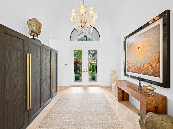 Welcome to this exquisite Victoria model in The Bridges, where timeless elegance meets modern sophistication. Set on a serene lakefront w/ coveted southern exposure, this home has been meticulously upgraded to offer a refined lifestyle.Beyond the striking new glass-inset double doors & refreshed landscaping, interiors showcase flat-finish ceilings & walls, fresh paint in & out, & new designer chandeliers & recessed lighting. The gourmet chef's kitchen features quartz counters & backsplash, Viking appliances incl. gas range & double ovens, Sub-Zero fridge & dishwasher. A spacious island, kitchen bar & family dining area create the perfect culinary space, while rich marble floors, custom wood floors in the primary suite, & new guest room flooring elevate every detail. Click to see more The lavish primary retreat offers a morning kitchen, remote shades, and custom walk-in closets, while the spa-inspired bath dazzles with a dramatic chandelier, marble countertops, soaking tub, marble shower, instant hot water, and a new Moen smart toilet. Additional features include a club room with custom entry door and remote Hunter Douglas blinds, a sophisticated wet bar with gold fixtures, refreshed secondary baths, and whole-home reverse osmosis water system (2023).