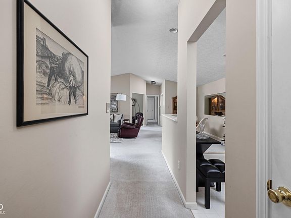 Pride of ownership is evident in this beautifully maintained 2-bedroom, 2-bath condominium, offering a generous 1,442 square feet of maintenance-free living. This desirable larger floor plan features an open and airy layout, enhanced by vaulted ceilings and anchored by a cozy fireplace in the main living area-perfect for relaxing or entertaining. A versatile den provides ideal space for a home office, reading nook, or additional living area. The thoughtful split floor plan ensures privacy, with two spacious bedrooms on opposite sides of the unit. The primary suite impresses with dual closets, a vaulted ceiling, and a private bath, while the secondary bedroom includes a large walk-in closet and access to a dedicated full bath. Additional features include a private garage (#16), an in-building storage unit, and access to a vibrant community with amenities such as a clubhouse, swimming pool, and tennis courts. Conveniently located just minutes from Eagle Creek, top shopping and dining options, and easy interstate access-this is the perfect blend of comfort, convenience, and community.