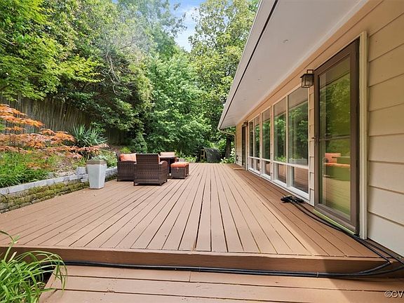 Photos today! Friday!.....Located in Highland Hills and designed by one of the leading modernists in Washington D.C., Charles Goodman, this light-filled home with classic mid-century modern floor-to-ceiling windows is a beautiful space with endless possibilities. The main level features an open kitchen and dining area with freshly painted white cabinets, stainless appliances & granite counters. The kitchen is connected to the family room with a wall of windows, lovely hardwood floors, an original brick fireplace w/wood storage and clerestory windows above allowing fresh air, light and woodland views. The floor-to-ceiliing windows let in beautiful light and open to a deck that runs the length of the house, surrounded by beautiful plantings, perfect for entertaining. The main level includes 3 bedrms/1full bath,1 half bath as well as extra closets. Lower level features another expansive window wall, additional living space, views of the gardens, side and back doors. Adjoining is a functional workshop/laundry room with significant storage. Also on lower level is a room perfect for office, bedroom or project area with a possible ensuite full bath. Adjacent to the main house is an unfinished workshop (w/electricity & windows) which could easily converted to finished space. This contemporary home was positioned on the lot by Goodman to enjoy the beautiful green spaces, rock gardens and mature trees from within.The Highland Hills neighborhood is known for some of Central Virginia's finest mid-century architecture with efforts underway to list Highland Hills on the National Register of Historic Places and Virginia Landmark Registry. A added plus is the pool and civic association close by. This is a wonderful opportunity to own a property designed by a renowned architect and create a living space to suit your style and space. Conveniently located close to Midlothian Village, Downtown Richmond, restaurants, shopping, libraries and parks.