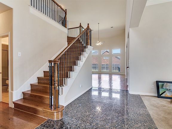 Welcome to this spacious 6-bedroom, 3-bath, 2-story home in Rowlett! Upon entry, you’re greeted by a foyer with beautiful granite flooring, soaring vaulted ceilings and large windows that flood the home with natural light. Formal living and dining areas offer the perfect space for entertaining, while the expansive family room, wired for surround speakers and featuring a cozy gas-log fireplace, flows seamlessly into the kitchen. The kitchen boasts abundant cabinetry, a center island, walk-in pantry, and a generous breakfast nook overlooking the backyard. The oversized primary suite is a true retreat, complete with a luxurious ensuite bath featuring dual vanities, a garden tub, separate shower, and a generous walk-in closet that conveniently wraps under the stairs. Three additional bedrooms and a full bath are located on the main floor, offering flexible space for family, guests, or a home office. Upstairs, you’ll find a large game room, two oversized bedrooms, and a full bath—ideal for gatherings, hobbies, or relaxation. Step outside to the backyard with an open patio and plenty of room for outdoor living, play, or entertaining. Located just minutes from Lake Ray Hubbard, this home combines comfort, space, and convenience in one beautiful package. A new roof was placed in 2021 and is still under warranty. New carpets in bedrooms. New tankless water heater.