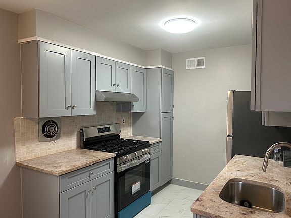 Freshly painted with new appliances , carpeting. Beautiful totally renovated kitchen and bathroom. Easy walking to public transit and a great neighborhood. One car garage and laundry room in the basement.