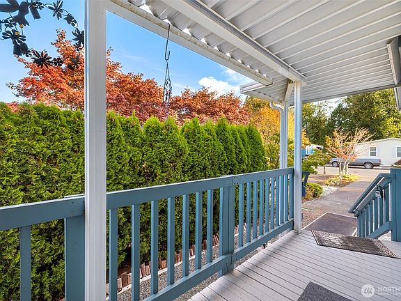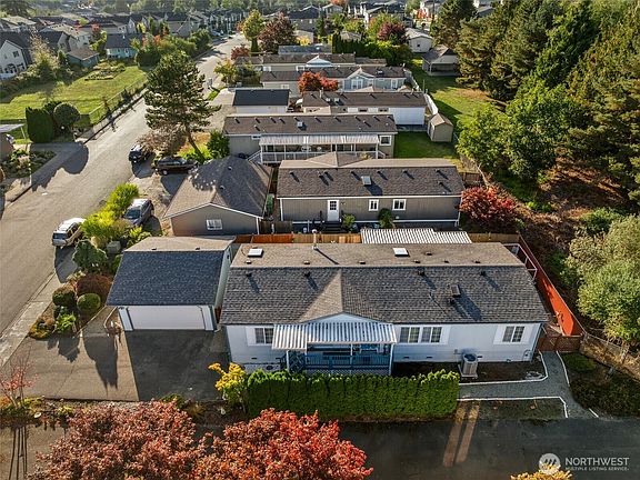 Welcome home to this cute and cozy house! Step into a vaulted ceiling living room with fireplace and lots of natural light. The gorgeous kitchen is complete with breakfast bar and eating nook. Lots of cabinet and counter top space for your cooking needs The primary bedroom is separated away from the other 2 guest bedrooms. Spacious primary bedroom with vaulted ceiling, walk in closet, and shower only bathroom. This property also features a detached garage with auto door opener, 2 decks, and fenced in yard space. The home features skylights for natural light and a heat pump system for heating and cooling. The lot is not leased land!