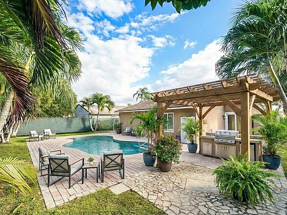 This 3 bedroom, 2 bath single family home is a rare Boca find with an in ground pool and a spacious backyard. Set in a quiet, well kept neighborhood, it's ideal for relaxed Florida living. Start your mornings poolside, rinse off in the outdoor shower, and enjoy plenty of room to entertain or let pets roam. Located in an area with A rated schools, low monthly HOA, and community tennis courts. Impact windows and doors, a 2019 AC, and a flexible layout give you comfort now with room to make it your own.