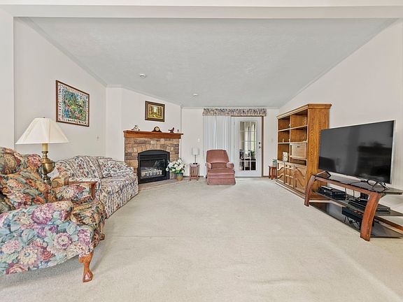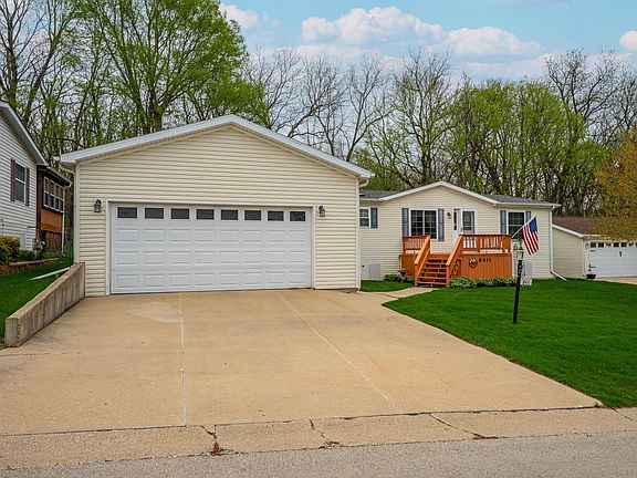 Private, nature-lover's retreat in a peaceful 55+ community. Discover comfort and tranquility in this beautifully maintained 3 bedroom, 2 bath home offering 1793 SF of living space, nestled at the back of the park. This split bedroom floor plan provides added privacy and backs directly onto the serene Kieselburg Forest Preserve, no neighbors behind you, just a peaceful tree lined and the occasional deer or wild turkey. Enjoy your morning coffee or a good book in the light filled 4 season porch, the perfect place to unwind and take in the natural surroundings. The spacious primary suite features a luxurious bathroom with a walk in shower, whirlpool tub and a massive WIC. The kitchen offers ample counter space and includes a cozy eat-in area. In addition to a separate dining room, ideal for casual meals or entertaining guests. Lot rent is $700/month, with an additional $90 covering sewer, water, and garbage, all payable with the lot rent. Park approval is required. Sold "as is"
