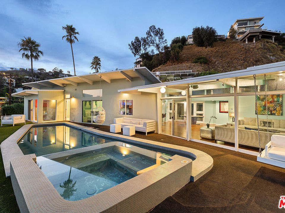 Mid-Century Modern Entertainer's Retreat! Perched above the Sunset Strip, this 3-bedroom, 2-bath mid-century masterpiece captures the best of Hollywood Hills living panoramic city-to-ocean views, timeless design, and ultimate privacy. Flooded with natural light, the home features floor-to-ceiling glass, open living spaces, and three fireplaces that create a warm, inviting atmosphere for entertaining. The chef's kitchen with professional appliances flows seamlessly to the outdoor oasis. Saltwater pool and spa surrounded by palm trees, bamboo, and rosemary for a true resort feel. Just minutes from Soho House, Chateau Marmont, Runyon Canyon, and the Sunset Strip's iconic nightlife, this home perfectly balances tranquil seclusion and city energy.More than a home, 8411 Hollywood Blvd is a statement of style and soul designed for those who love to entertain, unwind, and live the California dream!