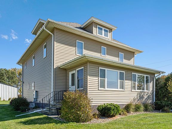 Get away from it all! Let beauty surround you in this wonderful acreage situated on over three acres featuring updates throughout and including a pole building with heated shop. This meticulously maintained acreage welcomes you with a wonderful front porch that is perfect for taking in those beautiful days. Stepping inside, you will love the spacious living room that features amazing handcrafted woodwork and opens to the formal dining room. This is the perfect place for entertaining as its just off the kitchen. The updated kitchen features quality cabinetry and countertops, nice tile backsplash as well as stainless appliances. With a half bathroom, an awesome drop zone, and main floor laundry- convenience is key! Offering a main floor bedroom option or a den/office area makes this home even better. The second floor is home to three spacious bedrooms including the primary bedroom that includes an impressive private ensuite with a wall of built-ins. With an additional full bathroom upstairs, living is easy here. The lower level offers tons of extra storage space. Leaving you in awe, the exterior amenities of this one are wonderful! Nice landscaping and an amazing patio make this one sure to please. The pole building features multiple garage stalls and also includes a heated area. With a whole house generator, geothermal heating, newer siding and windows, a pole barn, and more- this one truly has it all! There is plenty of room for your garden and much more with this wonderfully maintained acreage that truly provides country living just outside of town! Don’t miss it!