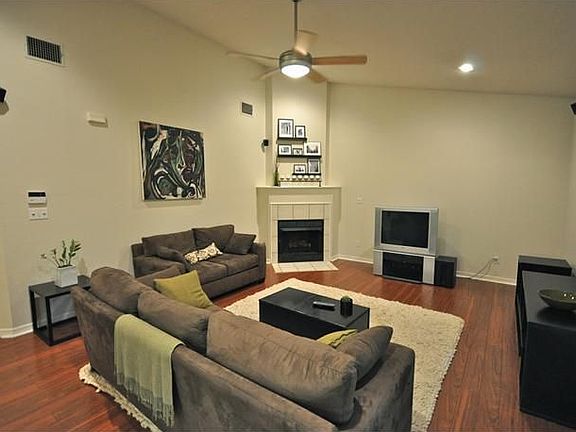 Wonderful 2-story 3 bed/2.5 bath open floor plan home in Cherry Creek located on a private end lot with fenced yard & covered patio. The main level features a spacious master suite with private bath, large open living area with gorgeous engineered wood flooring, gas log fireplace, vaulted ceiling with recessed lighting, ceiling fan & surround sound wiring, a spacious kitchen with gas cooking & microwave, formal dining area, 1/2 bath & laundry. The upper level features 2 spacious bedrooms and full bath.
