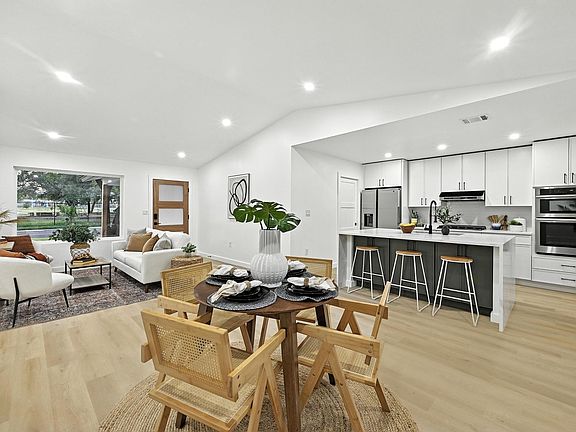 Tucked at the crossroads of Allandale and Crestview—two of Austin's most beloved neighborhoods—this fully reimagined 3-bedroom, 2-bathroom stunner has been taken down to the studs and thoughtfully rebuilt with style, substance, & soul. Every inch of this home reflects modern elegance & functional design, offering a turnkey lifestyle in a location that's hard to beat. Just minutes from The Domain, Q2 Stadium, and a vibrant array of Austin's top-rated restaurants, breweries, and boutiques, this gem delivers the perfect fusion of charm, convenience, and community. Inside, the living room features a pitched ceiling with a large picture window that fills the space with natural light, complemented by recessed lighting & luxury vinyl plank flooring. The open-concept layout connects the spacious dining area to a modern kitchen equipped with waterfall quartz countertops, white cabinetry, a black undermount sink, & stainless steel appliances. All three bedrooms offer recessed lighting, ceiling fans, & generous closets. Both bathrooms offer a seamless design with quartz countertops & a neutral finish. A full laundry room and drop zone off the garage add everyday functionality. Out back, the fully fenced yard with a new horizontal wood fence is a blank canvas—ready for turf, sod, or low-maintenance landscaping. Whether you're catching an Austin FC match, browsing local markets, or enjoying craft cocktails with friends, this location delivers the very best of the city—right at your doorstep.
