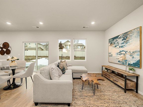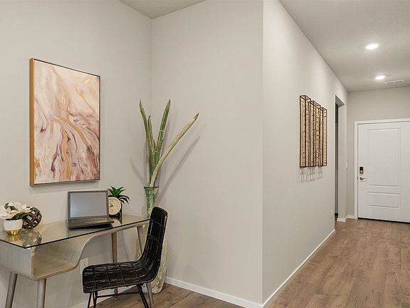 This Sierra is a stunning, modest single story featuring an oversized pantry, beautiful white shaker cabinets w/modern pulls, white toned quartz counters in the kitchen & stainless steel appliances. Reclaimed wood look laminate flooring in common areas & the bedrooms come with soft, cozy carpeting for those cold mornings! The Primary bedroom is located at the back of the home overlooking the backyard & features an ensuite bath w/ walk in closet. Built to the most recent codes w/ energy saving heat pump for heating and cooling! Our Smart Home package is also included, video doorbell, keyless front door entry, programmable thermostat, Z-wave switch. Echo Dot & Qolysys IQ panel is the central hub which talks to all your smart home devices whether at home or not! Front yard landscaping includes irrigation! Very convenient location, just 12 mins to Downtown!