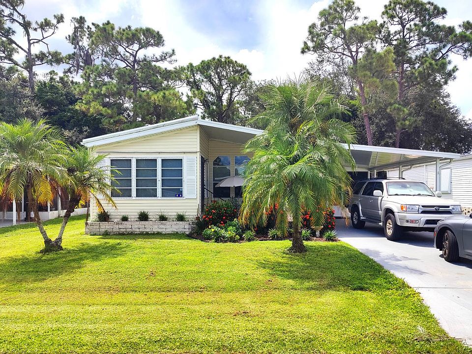 PRICED TO SELL!    Located in the quiet Phase 3 of Pioneer Village, bring your pets and start relaxing.  This larger 2 bedroom and 2 bath home has plenty of room, lots of storage and curb appeal!  The laundry is in the home, for added convenience. There is an extra large shed/ workroom and a large lanai on the side of the home.    There is a rare, eat in kitchen and a dining area.  The kitchen has lots of counter/work space, newer appliances and plenty of cabinets. There is a living room, and a den.  The furnished, master suite is extremely spacious, with a large private bath and a wall to wall closet. Did I mention the A/C and Hot Water Heater are new and the Golf Cart is included.       Pioneer Village is an active, 55+ community in North Fort Myers. Centrally located, it's 2 minutes from Interstate 75, bringing you to Downtown Fort Myers, Beaches and RSW Airport in minutes. We offer lots of amenities: Heated Pool, Spa, 2 Dog Parks, Tennis, Pickleball, Bocci, Shuffleboard, Cornhole, Volleyball, Exercise Room, Library, Bingo, Dinners and Dances. Reasonable monthly lot rent and affordable home price.  Why wait?!