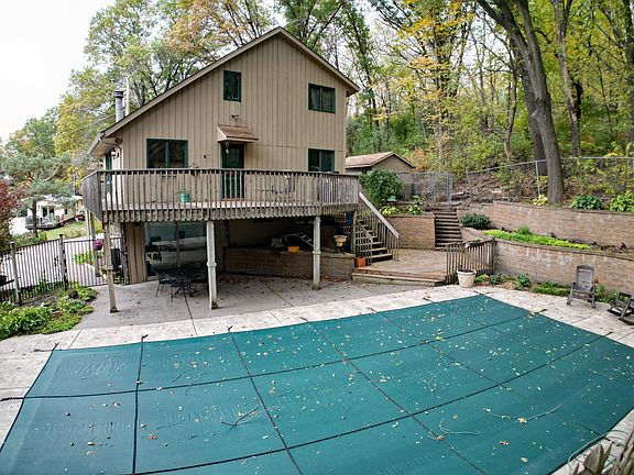 Come enjoy this secluded home, privately nestled on 0.7 acres of wooded land with winter views overlooking the Mississippi River. The Exterior features a spacious deck with a view of the underground pool, perfect for relaxing or entertaining. Enter through the walk-out basement into an expansive living area, generous bedrooms, soaring vaulted ceilings, and a catwalk that overlooks the living room and kitchen. This serene setting offers the perfect opportunity to add your personal touch and create a truly magnificent living experience.