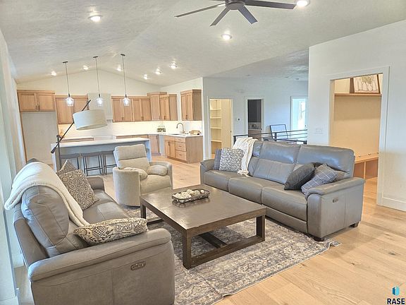 Welcome to 8412 E Spearfish Ct. in Sioux Falls. This ranch, walk out style home is in the Willow Ridge Addition and Brandon school district. This home provides three bedrooms, a full guest bath and a 3/4 master bath. It features a spacious primary bedroom with tray ceiling, walk in zero entry-tile shower along with walk in closet featuring organization system. There will be custom cabinetry throughout the entire home along with granite or quartz tops, luxury vinyl plank in all main spaces, and two-walk in pantries for ample kitchen storage. Kitchen also offers floor to ceiling cabinetry, under cabinet lighting, soft close drawers and oversized island. A heated garage with drain, large-covered deck, stamped concrete patio, and finished storage space with garage door entrance in the basement set this home apart. Sprinkler system and sod are also included. Also featured is a tuck under extra garage space. Agent is licensed in South Dakota and spouse to seller.