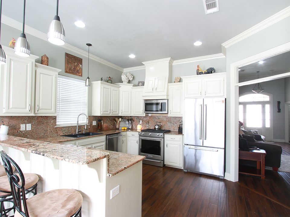 Make an Offer LOCATION, LOCATION, LOCATION! This beautiful home is located on a quiet gated one street cul-de-sac just minutes from everything. High ceilings, crown molding, granite slab, and hardwood floors are just a few of the custom features in this home. Kitchen features brand new commercial grade appliances, new sink and commercial faucet, Bordeaux slab granite, and is very spacious with plenty storage. Large oversized living room has plenty of room for entertainment, with a large gas fireplace and beautiful mantle. All rooms in the home have 10'+ ceiling height. All flooring throughout the home have been newly replaced with real wood bamboo flooring. Entire home has been freshly painted. Master suite is amazing, with plenty of natural lighting. Master bath has a 6' jetted tub with marble surround, 4' custom shower, his/her vanity, and a HUGE walk-in closet! Outside you'll find a great newly covered entertainment area. Don't wait, this home won't last long! Houses in this subdivision don't come available often. Owner/agent This home is pre-wired for security! Measurements deemed reliable and accurate and not warranted by realtor or seller.