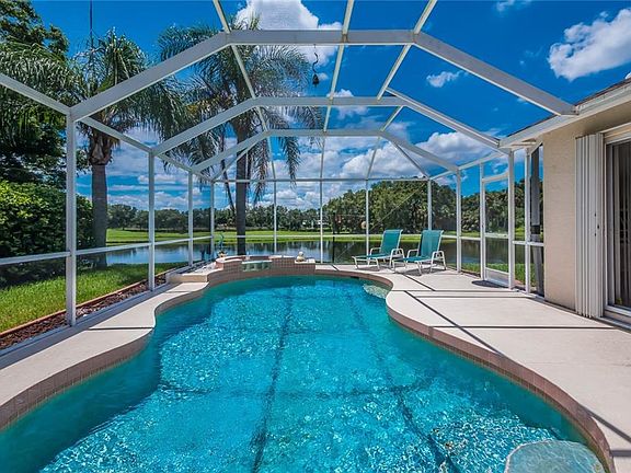 Enjoy the incredible views in much sought after Parkwood Lakes! 3 bedroom, 2 bath, split design, vaulted ceilings, formal and casual area with spacious lanai and caged inground pool. Enjoy the peaceful lake views and the serenity of a horse farm in the distance, in this one owner home on a premier homesite! Walking distance to shopping and restaurants and just minutes to newer schools and I-75 exchanges. Priced to sell!