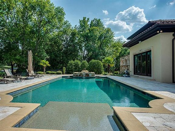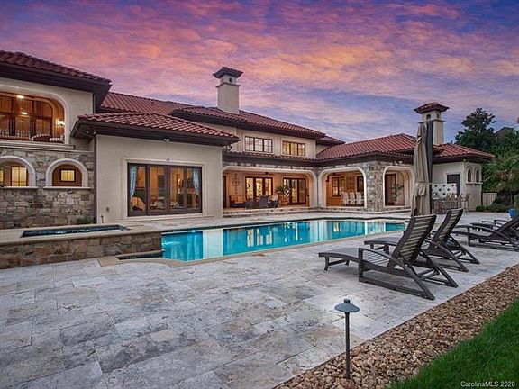 Elegant luxury situated on Quail Hollow Golf Course is a private and gated executive retreat. Home was designed to accommodate an executives family and lifestyle. Mediterranean architecture embraces family living/ entertaining. Grand interiors flow to outdoor oasis/pool/spa, overlooking infinite views of Quail Hollow Golf Course. Charlotte's award winning Arcadia Homes meticulously crafted the estate home w/attention to detail w/luxury finishes and appointments.Main level Master Suite wing is a private owners retreat; Executive Office, Master Bedroom suite, Spa bath, Fitness room, walk in closet w/private access to garage. Two story Grand Foyer opens to formal dining/living rooms. Wine vault/tasting room is a gathering place w/an old world embrace. Chef's Kitchen w/double islands is open to Breakfast & Great room w/fireplace. Upper level; loft sitting room, 3 bedroom ensuites, bonus/media room w/full bath, bonus/media room has covered veranda. 4 car garage w/separate golf cart garage.