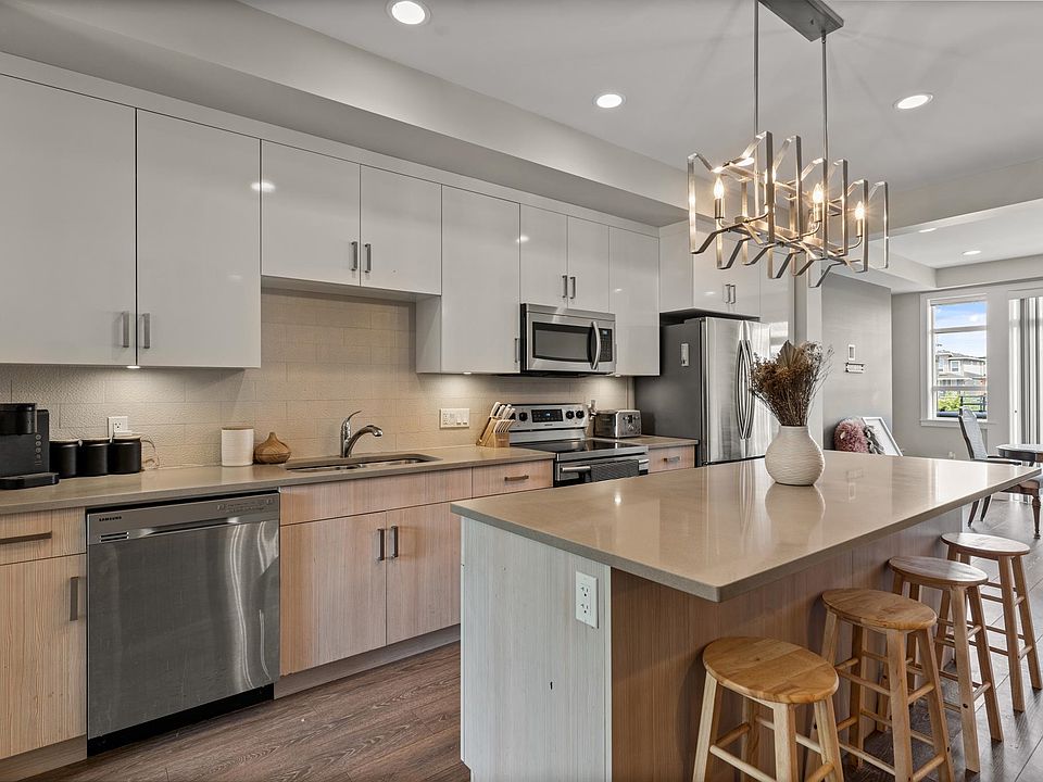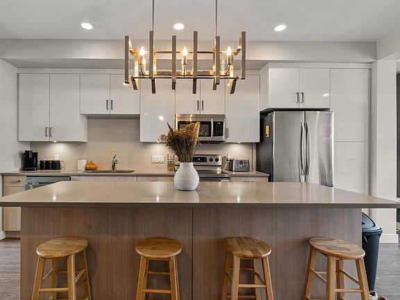 Floor-to-ceiling windowsMassive islandQuartz countersTile backsplashGreenspace and walking trails