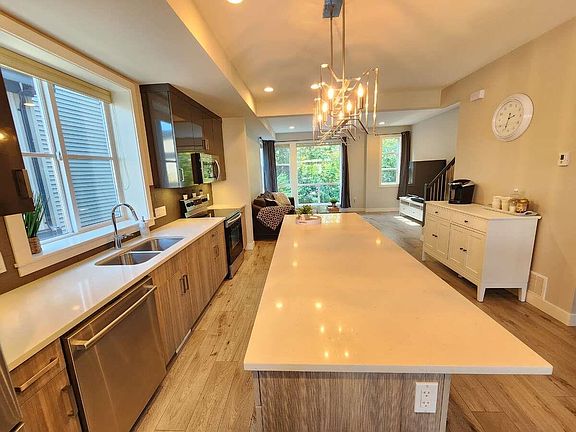 For more information, click the Brochure button. Welcome to this well cared for, 7 year old corner unit in Midtown with all the upgrades done. Stone countertops throughout, HW on demand, AC, privacy blinds, 12' vaulted ceiling in the master bedroom, double vanity in the Master bath, massive kitchen island, lots of cupboards, open concept living on main floor with 9' ceilings, large rec room & bathroom below, central vac and brand new high end Bosch dishwasher. Best location in the complex! Outside there is a fenced yard and a large beautiful 8x18 deck off the main with built-in pergola and privacy screens. This unit has the largest driveway in the complex big enough for large trucks and vans, as well as a large side by side garage. Tons of storage space in double wide garage.