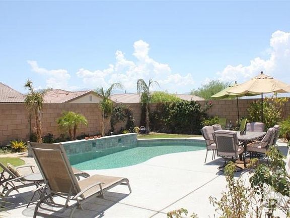 Lovely Terra Lago Pool Home with South facing Mountain Views, easy Walk to Community Clubhouse & Lake! Terra Lago's HOA includes basic cable FIOS T.V, Wi-Fi Internet, plus access to community pool, spa, billiard and ping pong room, Banquet Room, 24 hour fitness along with fishing and lake access. A Gated Guarded community, sits adjacent to two popular Golf Courses. Move in Ready home. 4 bedrooms, 2 baths with Spacious Great Room, Cook's Kitchen with Granite Island/Breakfast Bar, Formal Dining off Kitchen & Great Room. Secondary bedrooms ideally situated away from master for maximum privacy, bath adjacent off hallway. King Sized Master Suite is large enough to accommodate desk/office space, dual sink vanity, separate tub/shower, huge walk in closet! Laundry room with cabinets for storage, sink and counter top. Salt system pool with raised bond beam, 3 Waterfall spillways, plenty of lounging, entertaining space in this private yard. Mountain Views. Mello Roos Just Reduced!!!!