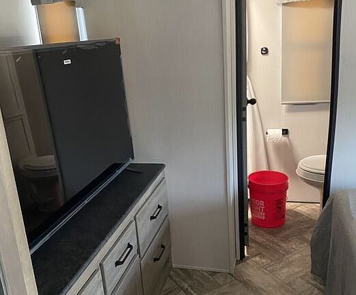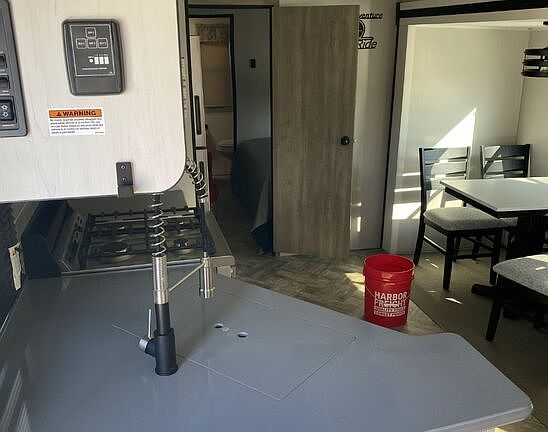This Destination Tailer Home is unique to Rancho Casa Blanca. It is a 2 bedroom home with all the amenities of a a travel trailer. This is a brand new 2024 unit, never lived in. It is hooked up to the permanent sewer and electricity. It is ready to finish the outside with decking, if preferred, or keep it as is. This is a steal for sure. This all located in a 55+ community that has a 3 par golf course, chipping green, putting green, 9 hole mini golf, pickleball and tennis courts, bocce ball, an indoor shuffleboard courts, 2 clubhouses with pools and jacuzzies and an additional 4 satellites with pool, jacuzzies and mail boxes. This is all within a 24 hour gate guarded community of 801 lots, that consist of a combination of Park Models and RV lots, where you own the land. The resort has a limit of 270 day occupancy. It is a perfect place to spend your holidays in the sunshine.