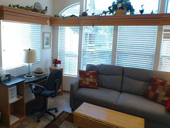 This wonderful Cavco Park Model located on the East Wall has Auto Shutters on the Deck Area.