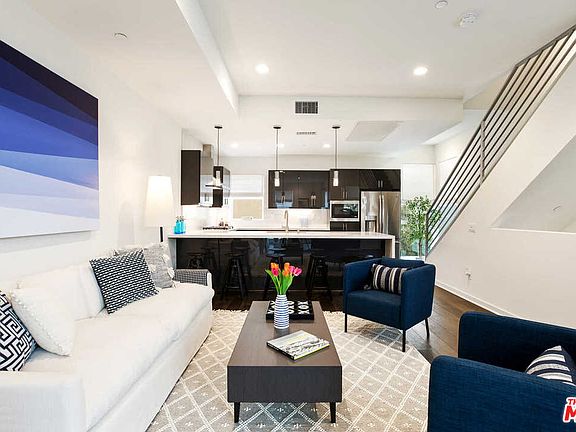 Huge reduction. Located in one of the most central and exciting neighborhoods in L.A., this home features European oak floors and large windows that flood the rooms with natural light. The first level is comprised of a guest bedroom with bath and direct entry to the two-car garage with built-ins. The second level living room opens to the dining room with a balcony and kitchen - great for entertaining. The cook's kitchen features stainless steel appliances and a huge eat-in breakfast bar with a waterfall countertop. Upstairs is the primary bedroom with a gorgeous tiled primary bath and walk-in closet, plus a second guest suite and laundry. The private roof deck has an outdoor kitchen and is solar-ready with panoramic city views. The walk score is 92/100, so residents can enjoy dining, cafes, bars, restaurants, markets, fitness, and studios, no car necessary. A great urban lifestyle, just minutes from Beverly Hills and West Hollywood.