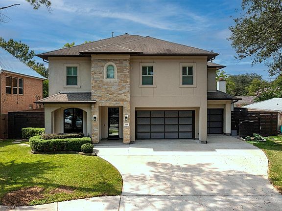 Nestled within the 610 loop by the Medical Center, this contemporary home boasts a 3-car garage, heated pool, outdoor kitchen, artificial turf yard, and electric car charging outlets. Inside, find an open layout with Oak wood floors, island kitchen, family room, study, and dining area. The kitchen features quartz countertops, double ovens, gas range, and a water purification system. Upstairs, the primary suite offers dual closets, whirlpool tub, and walk-in shower. Three more bedrooms, two baths, and a game room complete the upper level. In ceiling surround and outdoor speakers, Trane ACs, dehumidifier, tankless water heater, and tall privacy fence round out this exceptional property.