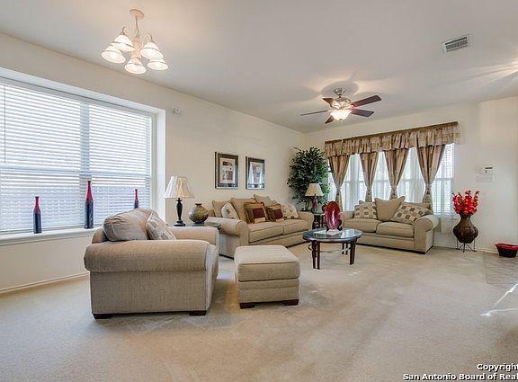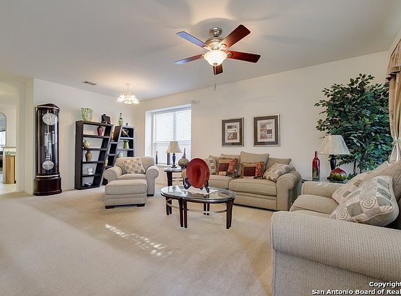 In the City? I thought I was in the country! Only 4 legged neighbors across the street! This well maintained, one-story home is in the popular Sonoma Ranch neighborhood. Open floor plan, tons of storage w/custom shelving, even the garage & has it's own AC. Highly rated Northside ISD, schools & neighborhood pool/park close by. Quick access to major employers, restaurants & shopping at 1604 & IH 10 - La Cantera, UTSA, USAA, Valero, USAA, Fiesta TX, The Rim, etc..New AC 2015, split unit in garage.