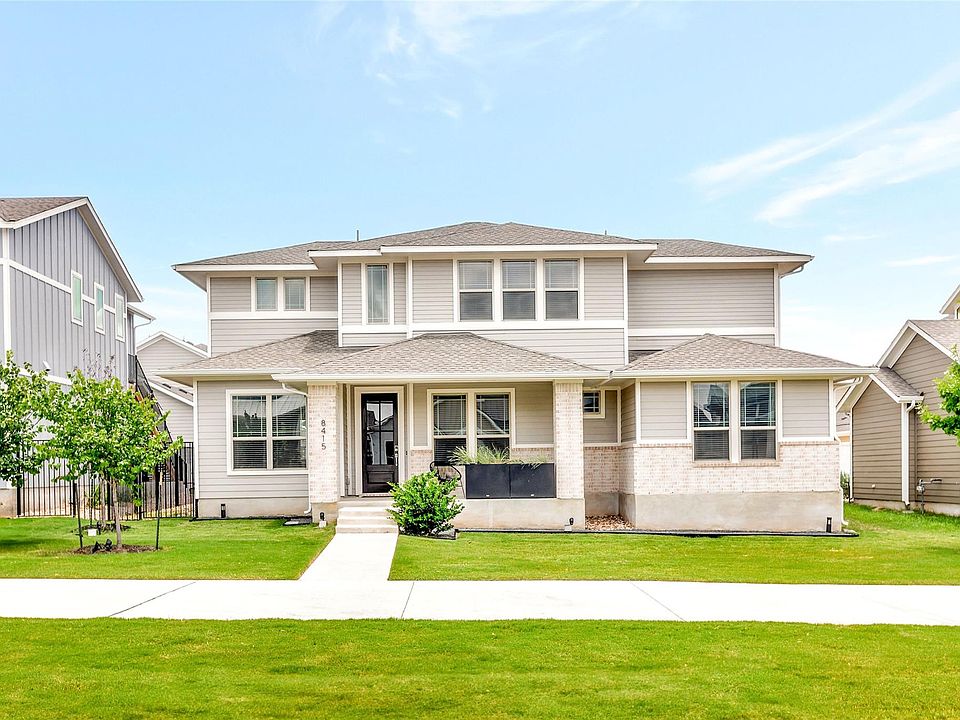 **Move-in Special: Enjoy your first month free when you move in on or before December 31, 2025.** Welcome to 8415 Laughlin Lane, a beautiful two-story home in the highly desirable Easton Park community. This home features an open-concept layout with a spacious kitchen, dining, and living area - perfect for everyday living and entertaining. The primary suite includes a large bedroom, dual vanity bathroom, frameless glass walk-in shower, and a *custom closet with built-in drawers and shelving*. Upstairs offers two additional bedrooms and an *office* with elegant 8-foot French doors. Upgraded finishes include wood-look tile flooring, quartz countertops, pendant lighting, and a built-in oven and microwave. The zero-maintenance backyard features turf, custom poured concrete pavers, and a partial privacy fence - ideal for relaxing or hosting friends. The rear-entry two-car garage includes a *custom mudroom setup*, and the home comes with all major appliances, including a refrigerator. Located within walking distance to Skyline Park and The Union amenities center with pools, gym, and community events. *Owner/Agent*