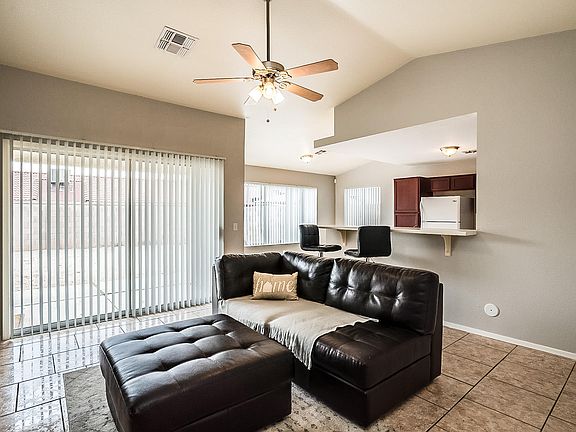 This charming home has great curb appeal with easy to maintain desert landscaping , 2-car garage and brick path. Inside you'll find tile throughout the main areas, large family room that opens to the eat-in kitchen with a brand new dishwasher. Blinds throughout the home for your privacy. The master bedroom features HUGE walk in closet, private en-suite bath with soaking tub and high ceilings! The guest room is just off the hall bath on the other side of the home. New roof in 2018, new water heater in 2017, and new A/C in 2016. Great value on a well cared for home!
