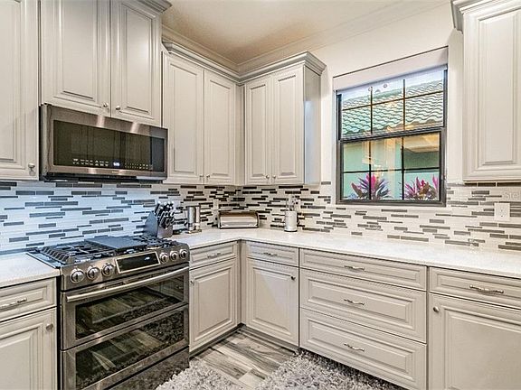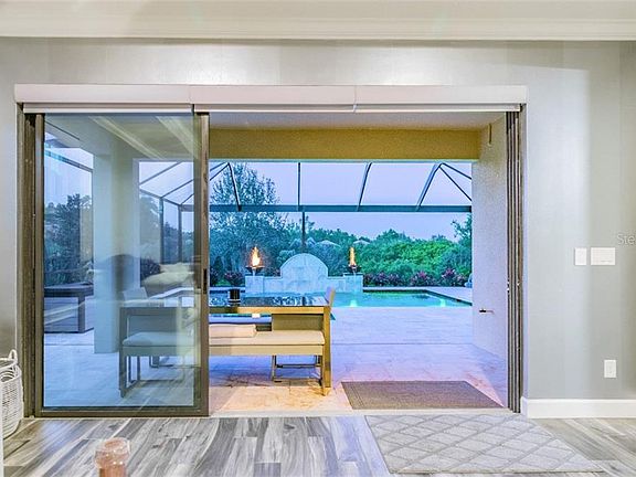 Rare opportunity to own a home like none other in the GATED maintenance free community of Esplanade. Exquisite energy efficient, FULLY UPGRADED home with PRIVATE heated POOL and SPA, venetian plaster tray ceilings, crown molding, and more. NO REAR NEIGHBORS, CONSERVATION LOT and NO CDD. Upon entry youre greeted with beautiful landscaping up a brick paver walkway inside your smart home oasis with high ceilings, natural light, tile flooring throughout, Lutron remote shades, and Klipsch surround sound with eight built-in speakers inside and outside the home. One of kind venetian plaster marmorino walls with venetian plaster tray ceilings featuring double crown molding. The exquisite kitchen showcases 42 cabinets, QUARTZ COUNTERTOPS, and top of the line Stainless Steel gas appliances. Triple sliding doors and French Pattern Diana Royal Travertine lanai floors lead you to an award-winning gas HEATED SALTWATER POOL and HEATED SPA enclosed by a PANORAMIC SCREEN ENCLOSURE, Florida privacy glass, and PRIVATE conservation lot behind it. Relax in the pools sun shelf listening to the sounds of your sheer waterfall enjoying two water and fire bowls. Plug and play with lanai ready for your next outdoor kitchen. Additional pool features, LED lights, Pentair pool equipment, pool cleaner, and Pentair IntelliChlor Salt Chlorine Generator. Unwind in a breathtaking master bath en-suite with QUARTZ COUNTERTOPS, DUAL VANITIES, separate walk-in tile shower and deluxe soaking tub. CUSTOM BUILT WALK-IN CLOSET with integrated Soft-Lite lighting and plenty of clothing storage. Master suite features gold diamond dust venetian plaster tray ceilings with double crown molding. Enjoy tranquil pool views with fire bowls and an IntelliBrite 5G underwater LED pool lighting from the comfort of the family room, kitchen, dining room, and master suite. OFFICE/DEN features French doors and is plenty spacious to be used as a fourth bedroom. SEPARATE LAUNDRY ROOM is fully equipped with 42 upper cabinets, storage, shelving, and CORIAN countertops. Save on energy with HIGH IMPACT WINDOWS, privacy tinted, and THERMAL WINDOWS. Integrated smart home with smart thermostat, Lutron powered blinds, security system with four dome cameras, three blink cameras, and doorbell camera. Additional home features, tankless water heater, central vacuum, epoxy garage, 8-foot doorways, in wall pest control, upgraded pantry and linen shelving, pull down attic stairs, hurricane shutters. Enjoy resort style living with lawn care included and an extensive list of amenities from a fitness center, resort style pool, dog park, pickle, bocce, and tennis courts.