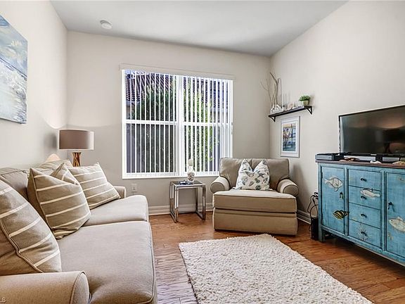 Step through the front door and into this charming two-bed/two-bath with den, rare Tifton-model rental home and enter your new sanctuary. Located in the gated community of VeronaWalk, this remarkable unit offers a versatile open concept living space. Lavishly furnished, with opulent wood floors throughout the sprawling living area, the home also boasts porcelain tile in the master bath, leading to a custom-elongated shower with tempered glass opening. Dry yourself off in the hearth-like warmth of the nook area. Sit a spell on the back porch and sip your coffee under a coral sunset, from your personal canal view. Verona Walk is renowned for its plethora of amenities. Have lunch with friends at the restaurant. Stop by the ice cream shop after your tennis match, then pick up your mail at our very own post office! All within the confines of your community.