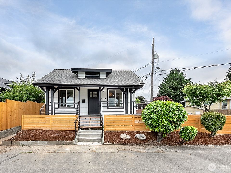 This South Seattle bungalow has been refreshed top to bottom and is truly move-in ready! Step inside to soaring ceilings and a bright, open layout. The newly renovated kitchen with island, quartz counters, and SS appliances adds both style and function. The seamless flow of this charming home offers a flexible floor plan to suit your lifestyle. The private upper level can serve as a primary suite with sitting area and closet, a second bedroom, or a great bonus space. Situated on a corner lot, this home features a flat, fully fenced yard! Around the corner from Lake WA, Pritchard Island Beach, boat ramp, transit/light rail, restaurants, and Seward Park—this location is unbeatable!