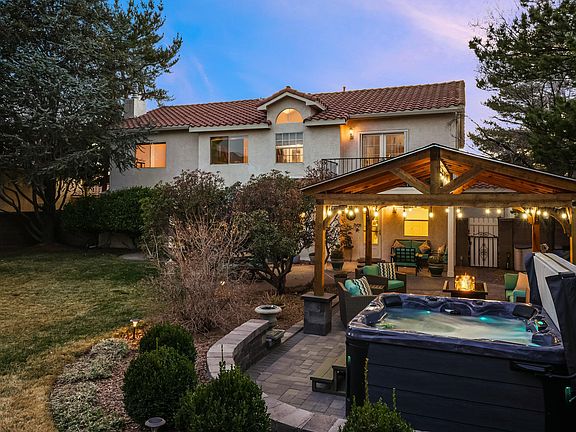 Nestled in a serene neighborhood, this beautiful 2-story home offers an idyllic blend of comfort and luxury. 2 high efficiency refrigerated air units and furnaces added in 2019. Kitchen and baths updated. Boasting a spacious yard adorned with lush grass, vibrant flowers, and mature trees. Private oasis created in 2022 with a charming cabana, and a soothing hot tub, perfect for relaxation and entertainment. The home is conveniently located near Desert Ridge Middle School and La Cueva High School, with easy access to shopping and dining options. Enjoy the comfort of refrigerated air throughout the house while taking in breathtaking views of the Sandia Mountains and stunning sunrises from your windows. This gem is a rare find, offering the perfect balance of tranquility and convenience