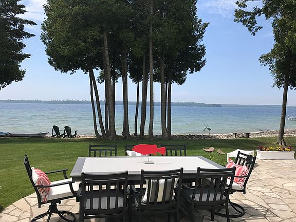 Lovely 3 bedroom home with a WESTERLY VIEW of Moonlight Bay, Toft Point and the Ridges......See the SUNSETS from the Lakeside of the Peninsula. Panoramic views from both inside and outside of this home. Floor to ceiling fieldstone fireplace with heatilator and fan. Ten foot ceilings in Great Room, Kitchen/Dining Areas and Sun Room. Hickory hardwood floors. Tile bathrooms and shower enclosures with custom glass. Whirlpool tub in Master Bathroom. Large FLAGSTONE patio on waterfront. Granite counter tops and custom cabinets throughout home. Whole house GENERATOR for those inconvenience power outages. Free standing tower for internet. Hanging LP gas heater in insulated garage. Storage Shed. Sellers are licensed real estate agemts/
