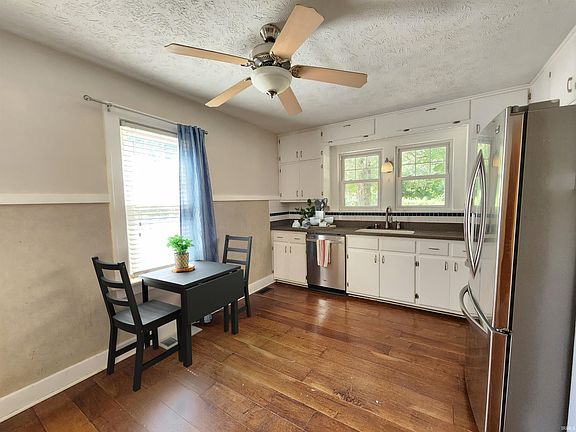 Unicorn Alert! Fantastic home in the Darmstadt area! This brick bungalow with almost an acre of land is ready for you to call home! The original wood door with metal door knocker greets you while you step into the living room. The living room has a stone gas fireplace with wood laminate flooring that carries into the dining room, halls and kitchen. The dining room has the original arched door way that adds character and charm. The kitchen is large enough for a small center island and has stainless steel appliances. Also on the main level are two bedrooms. One has a double closet with shelving, the other has adorable wainscoting and ceiling fan. Upstairs is the owner's suite with a large, corner soaking tub, double vanity, walk in shower and large closets! If additional living space is needed, NO PROBLEM! The basement has been finished out with three living areas and laundry area! Plumbing is even available if a 3rd bathroom is desired. A large 2 car garage is available for all the adult toys or cars! A Limited Home Warranty is even being provided by the sellers!