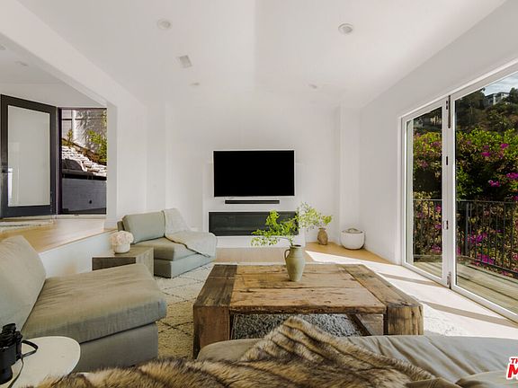 Seller financing is an option with a 30-year fixed mortgage at an interest rate of 5%, requiring a 10% down payment. Perched elegantly in the coveted Hollywood Hills above the iconic Sunset Strip, this remarkable 4-bedroom, 4-bathroom residence showcases a beautiful Contemporary Mediterranean offering breathtaking views from every corner. With a generous 3,210 square feet of living space, this home features luxurious interiors, INCLUDING A SEPARATE GUESTHOUSE that serves as an ideal MUSIC STUDIO, FOR an ARTIST or a HOME OFFICE. The gourmet kitchen is outfitted with high-end appliances and crafted for those who enjoy both cooking and entertaining. The open floor plan fluidly merges the kitchen, dining, and living spaces, fostering a welcoming ambiance. Each bedroom is thoughtfully designed to provide maximum privacy, ensuring a serene escape for all. The property is equipped with a premium Sonos sound system, delivering exceptional audio quality throughout the home. An infrared sauna offers a sanctuary for relaxation and wellness. SAFETY and SECURITY are PRIORITIZED with a cutting-edge alarm system and comprehensive outdoor HIKVISION SURVEILLANCE cameras. The outdoor lounge area serves as a tranquil retreat, ideal for unwinding while soaking in the stunning views. Additional amenities include a detached two-car garage and a prime location that balances privacy with convenience. This residence stands out as a true treasure in one of Los Angeles' most desirable neighborhoods.