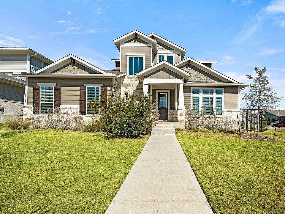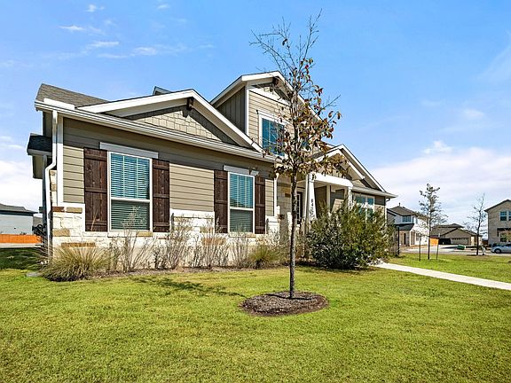 Welcome to your dream rental in the highly desirable Easton Park community! This beautiful two-story corner-lot home features an open and airy layout with a spacious kitchen that flows into the dining and living areas. Enjoy quartz countertops, dark wood cabinetry, and blonde engineered wood floors throughout the main level. The primary bedroom and ensuite bath are conveniently located downstairs for comfort and privacy. Upstairs offers large secondary bedrooms and full baths, perfect for family or guests. **A major bonus is the private-access studio with its own full bathroom, ideal for a gym, home office, or guest suite.** Relax or entertain outdoors in the generous yard with a covered patio. Refrigerator, washer, and dryer are included for an easy move-in. Located within walking distance of Skyline Park and The Union amenity center featuring pools, gym, playgrounds, and community events. Close to downtown Austin, the airport, McKinney Falls State Park, COTA, Tesla, and great shopping and dining. This Easton Park gem offers comfort, convenience, and community - everything you could want in your next home!