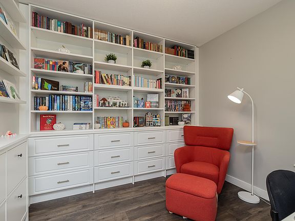 Pond viewExterior freshly paintBack deckHot tubWindow faciasBuilt-in book caseHot water tank