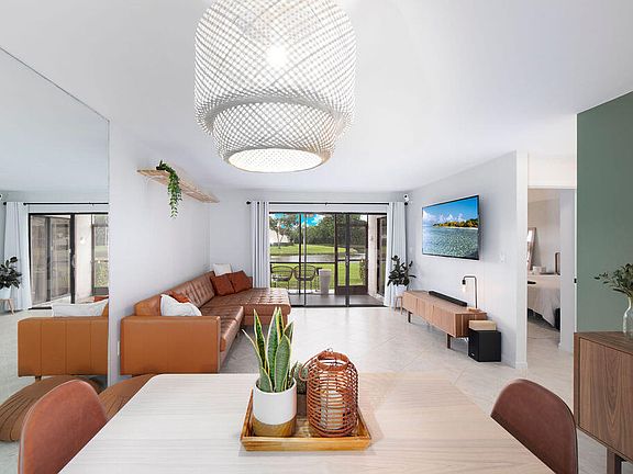 Gorgeous ground-floor condo featuring 2 bedrooms and 2 bathrooms, an expansive open kitchen with sleek quartz countertops, and updated LG appliances. Enjoy breathtaking views of the lake from the comfort of home. Located in an All-Age community within walking distance to a clubhouse offering amenities such as a card room, pool table, jacuzzi, pool, gym, and tennis courts. Conveniently situated near a variety of restaurants, shopping options, and easy access to the turnpike. Ideal for those seeking both comfort and convenience in a prime location.