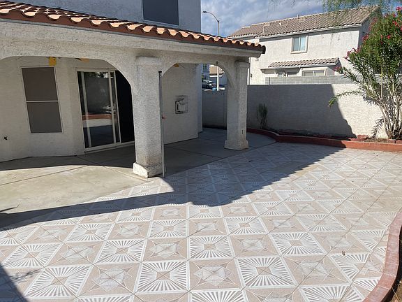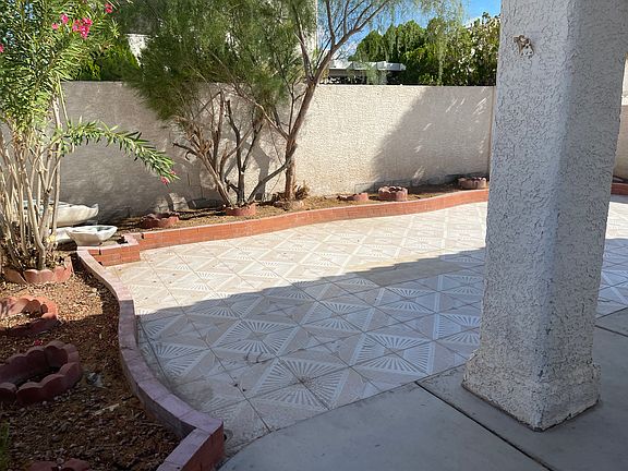 Step outside to discover a private, low-maintenance backyard. The expansive patio, with its unique decorative tile, is perfect for entertaining guests, or simply relaxing in the sun.
