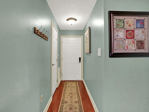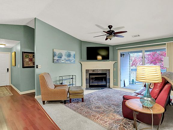 Move right into this beautifully updated condo filled with custom upgrades throughout! The spacious great room features a vaulted ceiling, wood-burning fireplace with a custom mantle, and sliding doors that open to a deck with a lovely view. The stunning kitchen offers new 42" custom cabinets, granite countertops, nice appliances, a built-in pantry, undermount sink, breakfast bar, and tile flooring. The primary suite includes a vaulted ceiling, walk-in closet, and a private bath with an oversized walk-in shower. The second bedroom features custom built-ins, a walk-in closet, and a Murphy bed-perfect for a home office or guest space. Additional highlights include a separate storage room in the hall, a one-car detached garage, and a designated parking spot right outside your front door. Enjoy easy access to shopping, dining, and the interstate.