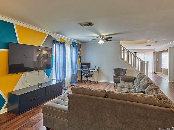 This home has just under 3,000 square feet for a great price in the city of Converse, Texas. There is a beautiful community pool to help cool off in this summer heat! All of the large four bedrooms are upstairs with a third living space at the top of the stairs. Two large living areas are downstairs, one of which can be used as a dining space. There is also a half bathroom downstairs for guests. The kitchen has ample cabinet and counter space and there is extra storage in the pantry/utility room. The sliding glass doors lead to a large backyard and deck that is perfect for grilling. The firepit will be perfect when cool weather rolls in during the fall. This home is 13 minutes from Randolph Air Force Base and just 12 minutes to shopping at The Forum. Perfect location, super fair price and so much space for well under $300,000!