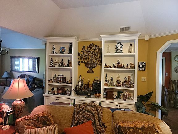 This property features a large deck, attached 2 car garage, laundry room, wood burning fireplace. It has ceiling fans in the master bedroom, great room and office.