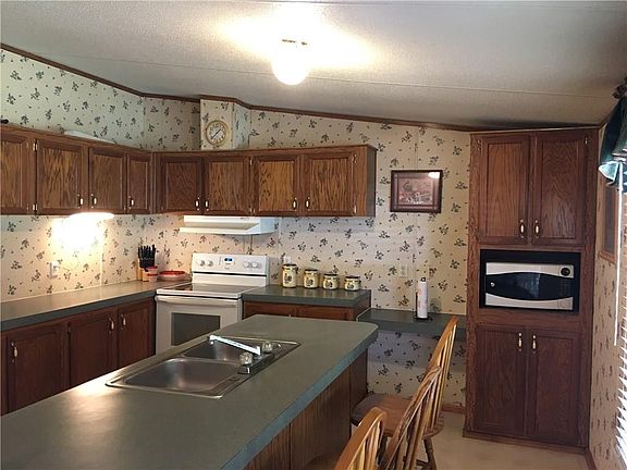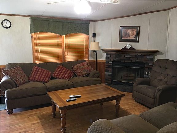 Move-in ready mobile home with four bedrooms and two baths in a nice, quiet location. There is a roomy kitchen with a dining area, and a spacious living area that boast a wood burning fireplace. This property has a front porch, a huge back porch, an outdoor kitchen, and a shed. This property sits on 1.42 acres of land. Refrigerator, dishwasher, stove, washer, and dryer remain.